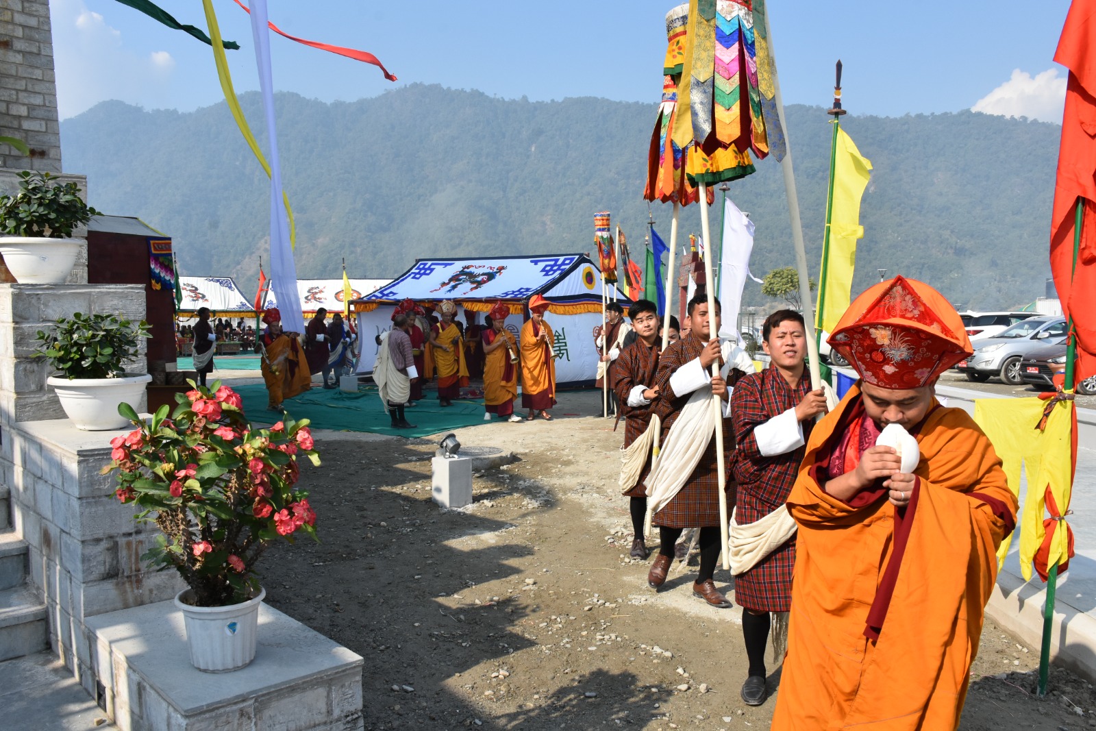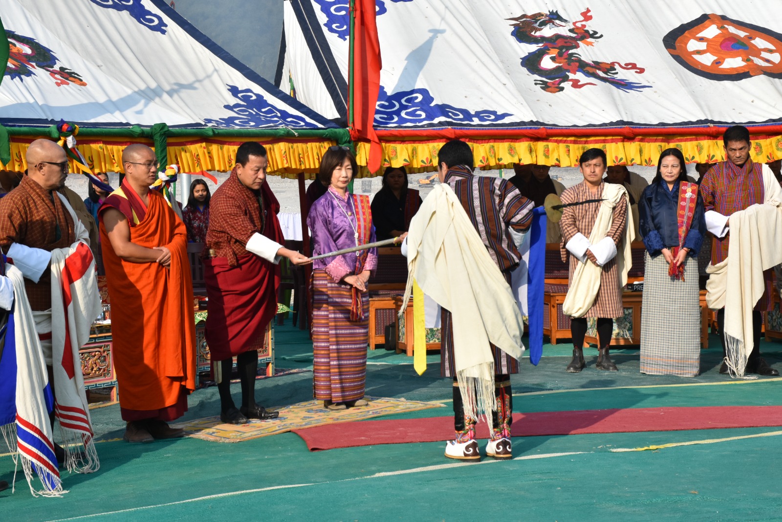 𝗧𝗵𝗲 𝗢𝗺𝗰𝗵𝘂 𝗕𝗮𝘇𝗮𝗺 𝘄𝗮𝘀 𝗼𝗳𝗳𝗶𝗰𝗶𝗮𝗹𝗹𝘆 𝗶𝗻𝗮𝘂𝗴𝘂𝗿𝗮𝘁𝗲𝗱 𝗼𝗻 𝟮𝟯𝗿𝗱 𝗗𝗲𝗰𝗲𝗺𝗯𝗲𝗿 𝟮𝟬𝟮𝟱 𝗯𝘆 𝗗𝗮𝘀𝗵𝗼 𝗞𝗮𝗿𝗺𝗮 𝗬. 𝗥𝗮𝘆𝗱𝗶, 𝗖𝗵𝗮𝗶𝗿𝗺𝗮𝗻 𝗼𝗳 𝗗𝗿𝘂𝗸 𝗛𝗼𝗹𝗱𝗶𝗻𝗴 & 𝗜𝗻𝘃𝗲𝘀𝘁𝗺𝗲𝗻𝘁𝘀 (𝗗𝗛𝗜), 𝗮𝗻𝗱 𝗠𝘀. 𝗦𝗼𝗻𝗼𝗺𝗶 𝗧𝗮𝗻𝗮𝗸𝗮, 𝗖𝗼𝘂𝗻𝘁𝗿𝘆 𝗗𝗶𝗿𝗲𝗰𝘁𝗼𝗿 𝗼𝗳 𝘁𝗵𝗲 𝗔𝘀𝗶𝗮𝗻 𝗗𝗲𝘃𝗲𝗹𝗼𝗽𝗺𝗲𝗻𝘁 𝗕𝗮𝗻𝗸 (𝗔𝗗𝗕). 𝗧𝗵𝗲 𝗶𝗻𝗮𝘂𝗴𝘂𝗿𝗮𝘁𝗶𝗼𝗻 𝗰𝗲𝗿𝗲𝗺𝗼𝗻𝘆 𝘄𝗮𝘀 𝗳𝘂𝗿𝘁𝗵𝗲𝗿 𝗴𝗿𝗮𝗰𝗲𝗱 𝗯𝘆 𝘁𝗵𝗲 𝗽𝗿𝗲𝘀𝗲𝗻𝗰𝗲 𝗼𝗳 𝘁𝗵𝗲 𝗺𝗼𝗻𝗮𝘀𝘁𝗶𝗰 𝗯𝗼𝗱𝘆, 𝘄𝗵𝗼 𝗽𝗲𝗿𝗳𝗼𝗿𝗺𝗲𝗱 𝗮𝘂𝘀𝗽𝗶𝗰𝗶𝗼𝘂𝘀 𝗿𝗶𝘁𝘂𝗮𝗹𝘀, 𝗺𝗮𝗿𝗸𝗶𝗻𝗴 𝘁𝗵𝗲 𝗰𝘂𝗹𝘁𝘂𝗿𝗮𝗹 𝗮𝗻𝗱 𝘀𝗽𝗶𝗿𝗶𝘁𝘂𝗮𝗹 𝘀𝗶𝗴𝗻𝗶𝗳𝗶𝗰𝗮𝗻𝗰𝗲 𝗼𝗳 𝘁𝗵𝗶𝘀 𝗹𝗮𝗻𝗱𝗺𝗮𝗿𝗸 𝘀𝘁𝗿𝘂𝗰𝘁𝘂𝗿𝗲.
